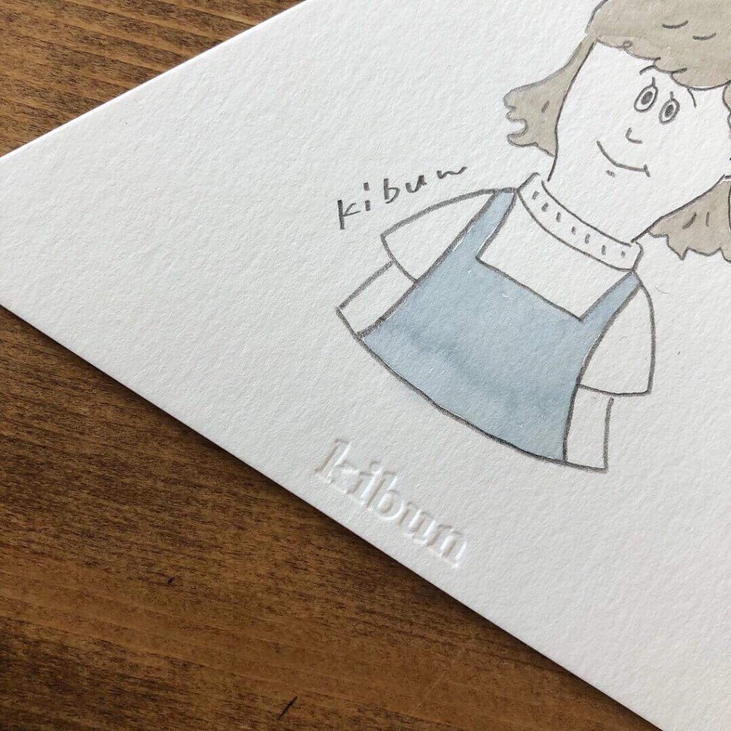 イベントを中心に似顔絵を描いている@kibun.iさんの台紙を作らせていただきました!三角形に断裁しセンターにはロゴを空押ししてます。
